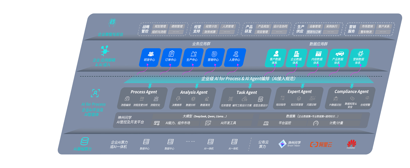 28大神问学智车解决方案是一套基于AI技术的汽车行业智能化系统,,覆盖从底层算力到顶层AI应用的全栈方案。。。方案由算力层、、、、模型层和应用层组成:算力层,,,方案支持多种一体机配置,,,具备云端灵活部署、、、、多云适配以及动态优化计算资源的能力;模型层,,,,28大神问学平台版提供了企业级AI应用一站式构建与管理平台,,,,支持基于后训练强化技术的汽车企业专属模型的训练、、、、评测和运营;应用层,,,28大神问学DeepSeek版提供包括超级员工、、、、智能招采、、、、智能营销、、、智能客服、、、AI for BI等一系列解决方案,,,,可助力汽车行业实现数字化转型,,,让管理更智能、、、响应更敏捷。。。。